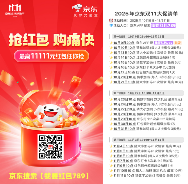 2025京东双11来啦!每天抽红包!