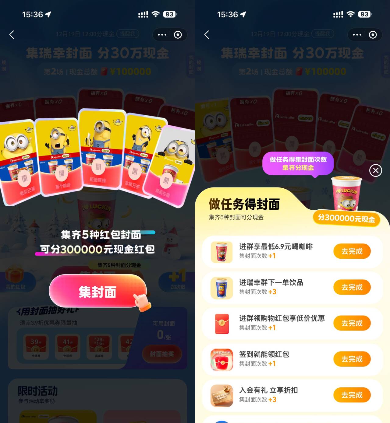 【支付宝集封面瓜分10万亓红包】支付宝搜索“喝瑞幸蕉好运”->集齐封面在12月19日12点瓜分10万亓红包