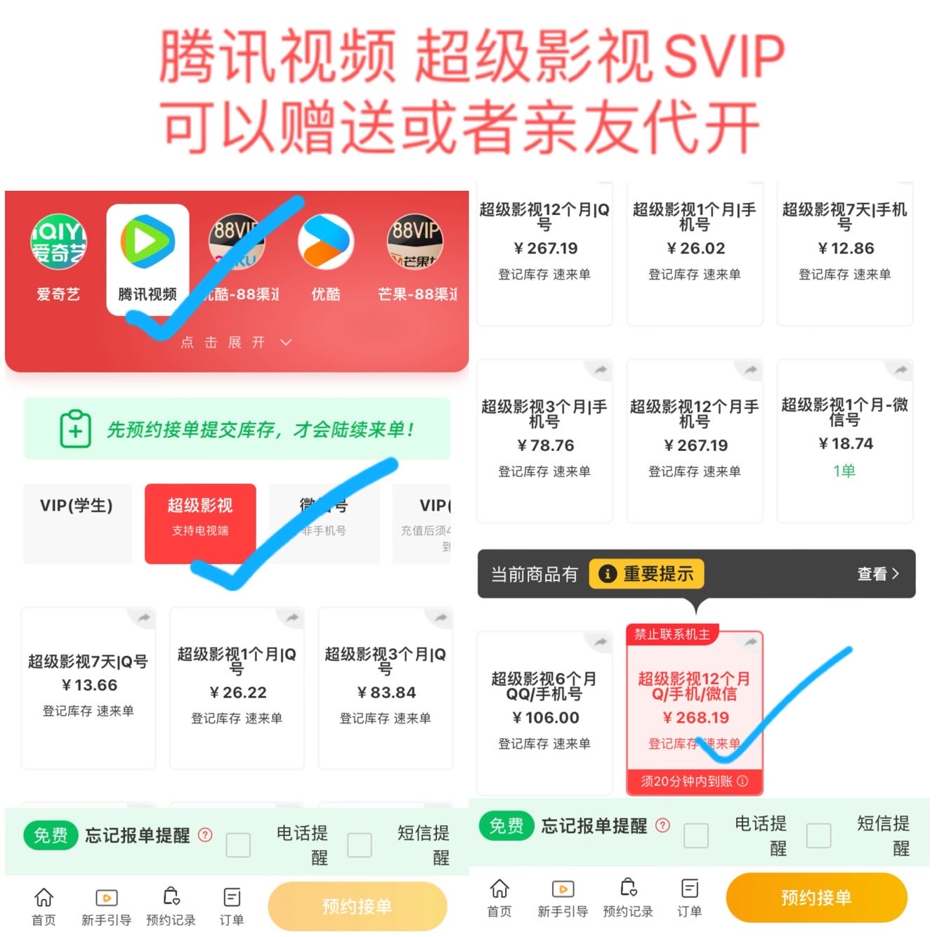 1️⃣别冲错号,冲错会员