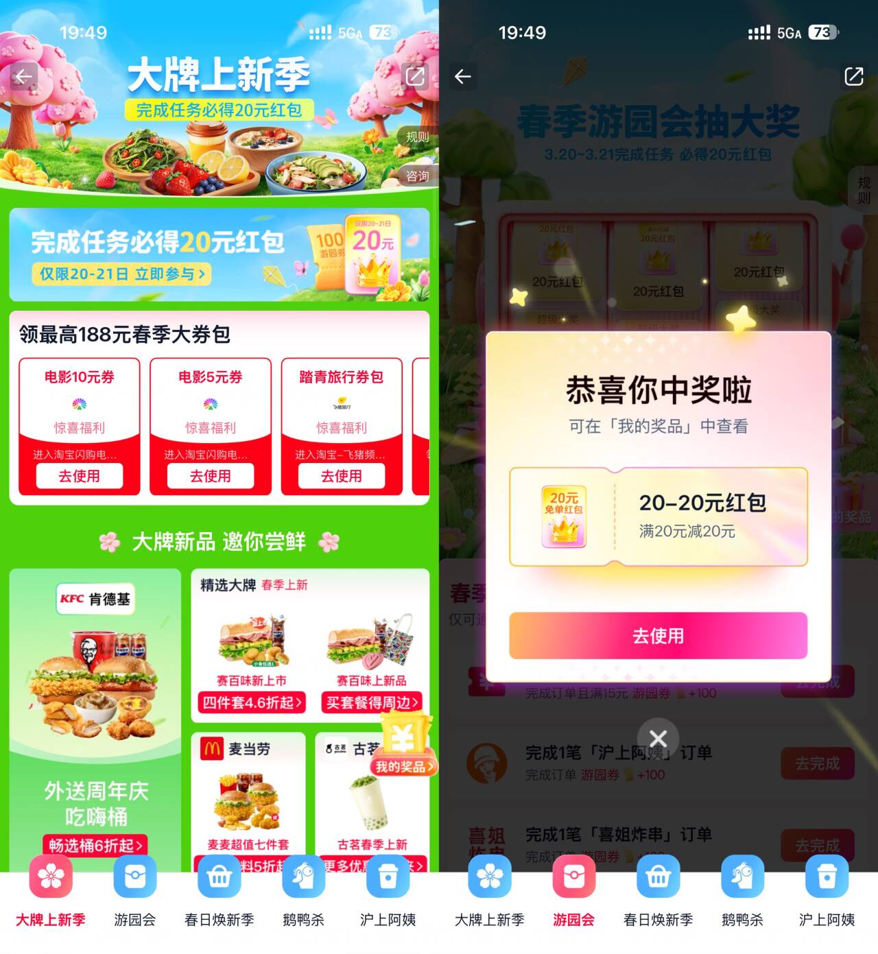 淘宝闪购APP搜索“大牌上新季”->点横幅进入活动->点奶茶和外卖得次数,必得20-20或40-20亓红包
